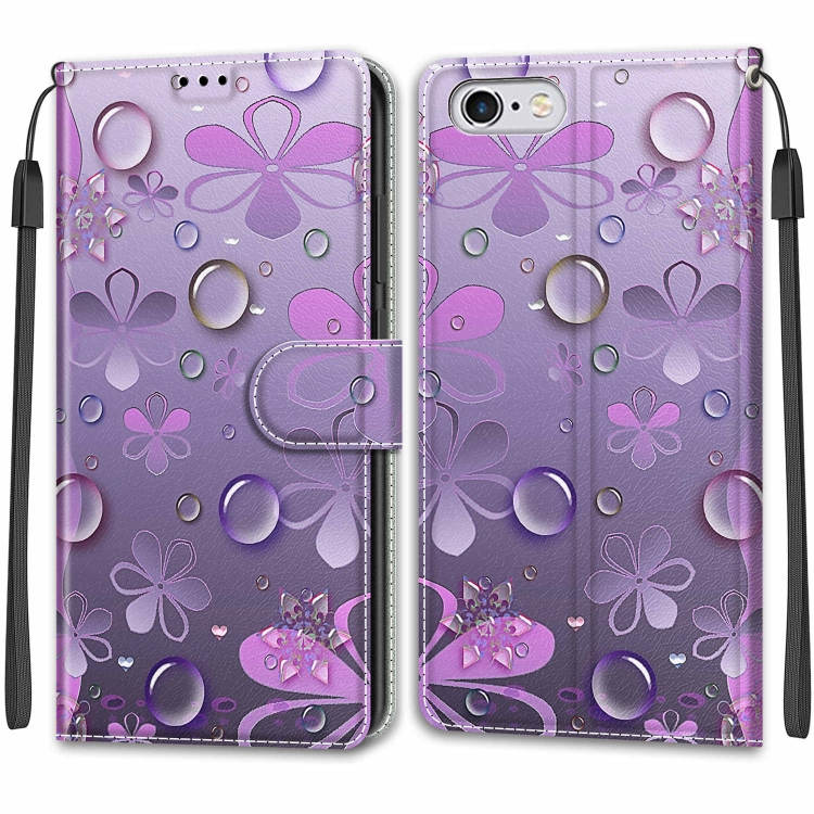 Funda de Cuero PU Voltaje Cierre Magnético Horizontal con Soporte y Ranuras para Tarjeta para iPhone 6S / 6 (C16 Gota de Agua Seis Petal Flower)