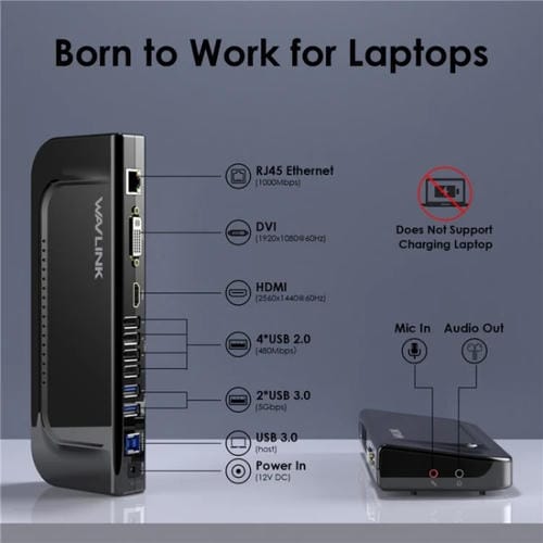 - 1x Estación de Acoplamiento Universal para Computadora Portátil Wavlink UG49DK4 con Dos Monitores Compatible con DVI HDMI VGA (Enchufe de la UE)