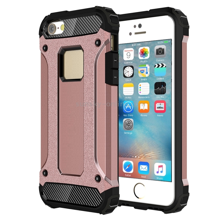 Estuche Combinado Tough Armor TPU + PC para iPhone Se y 5 y 5S (Oro Rosa)
