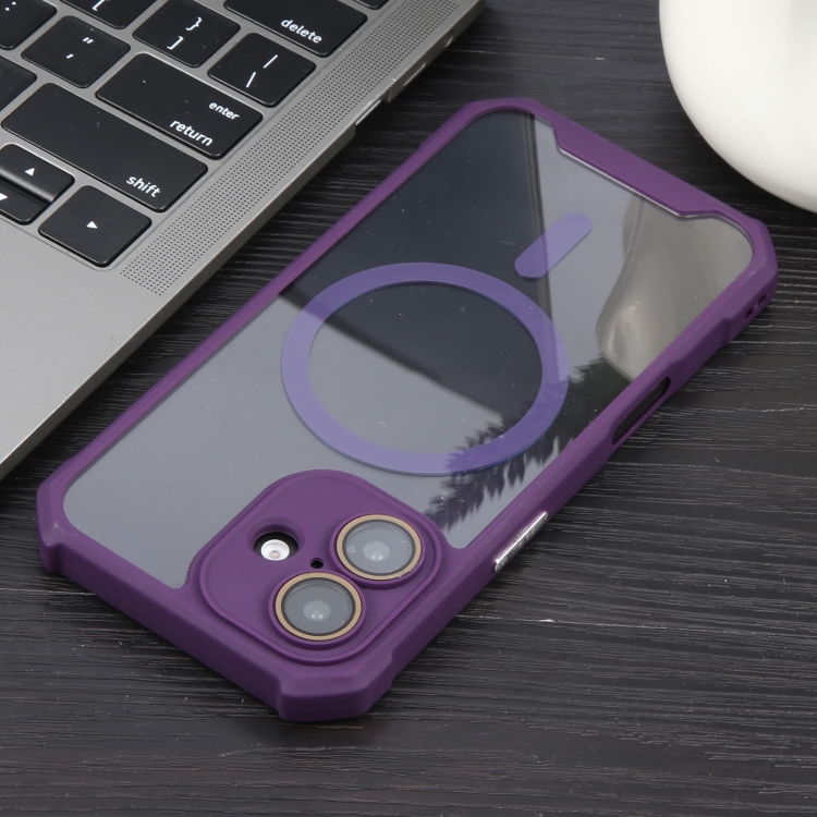 Estuche Acrílico y TPU con Bocina Magnética Magsafe para iPhone 16 con Película de Lente (Morado)