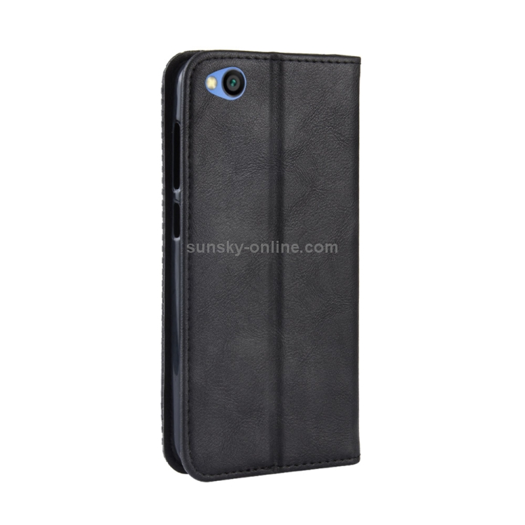 Estuche de Cuero con Tapa Horizontal con Textura Retro y Hebilla Magnética para Xiaomi Redmi Go, con Soporte, Ranuras para Tarjetas y Billetera (Negro)