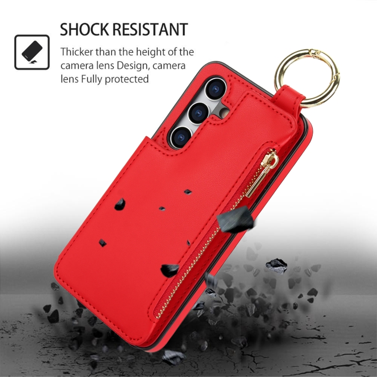 Estuche para Teléfono Samsung Galaxy A15 4G/5G Rfld con Cremallera y Anillo de Doble Hebilla Antirrobo (Rojo)