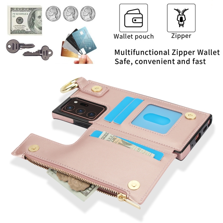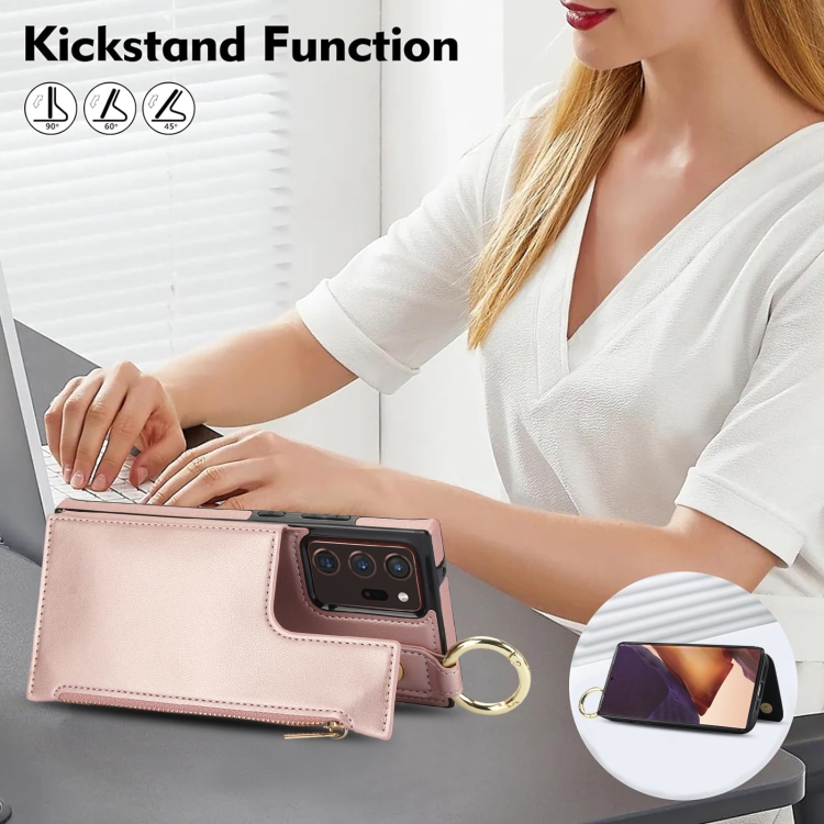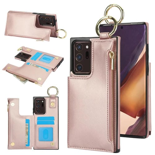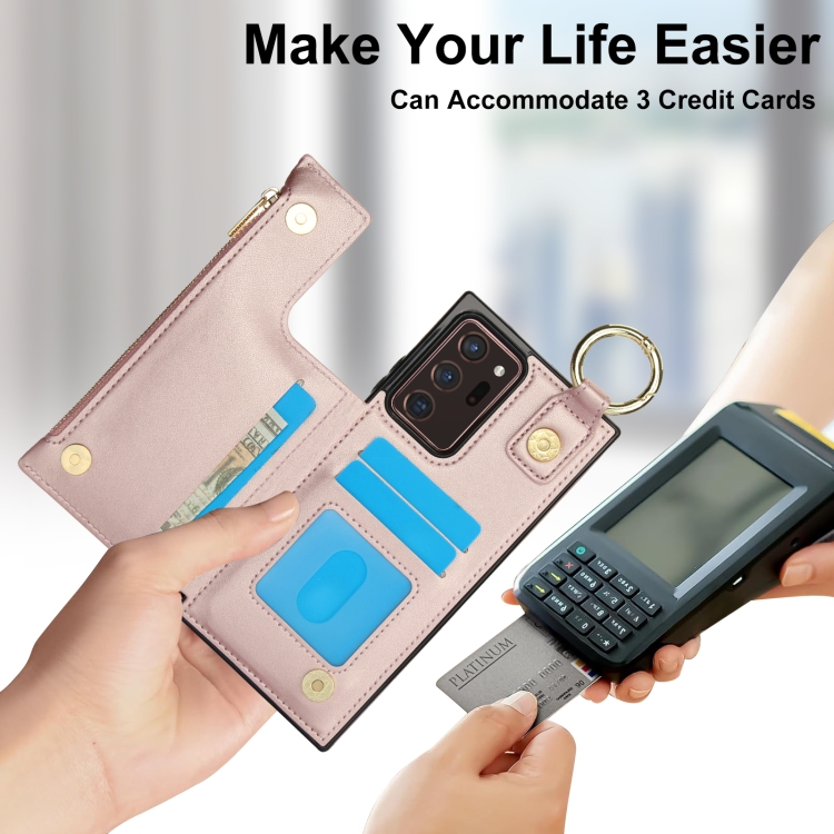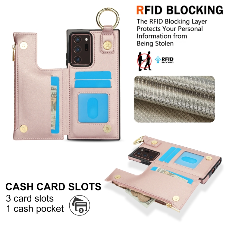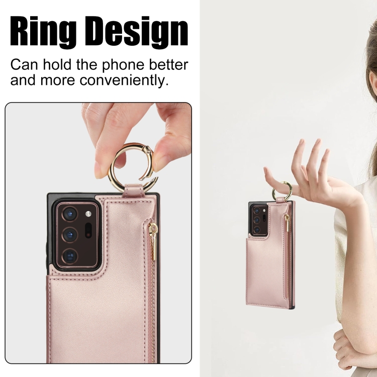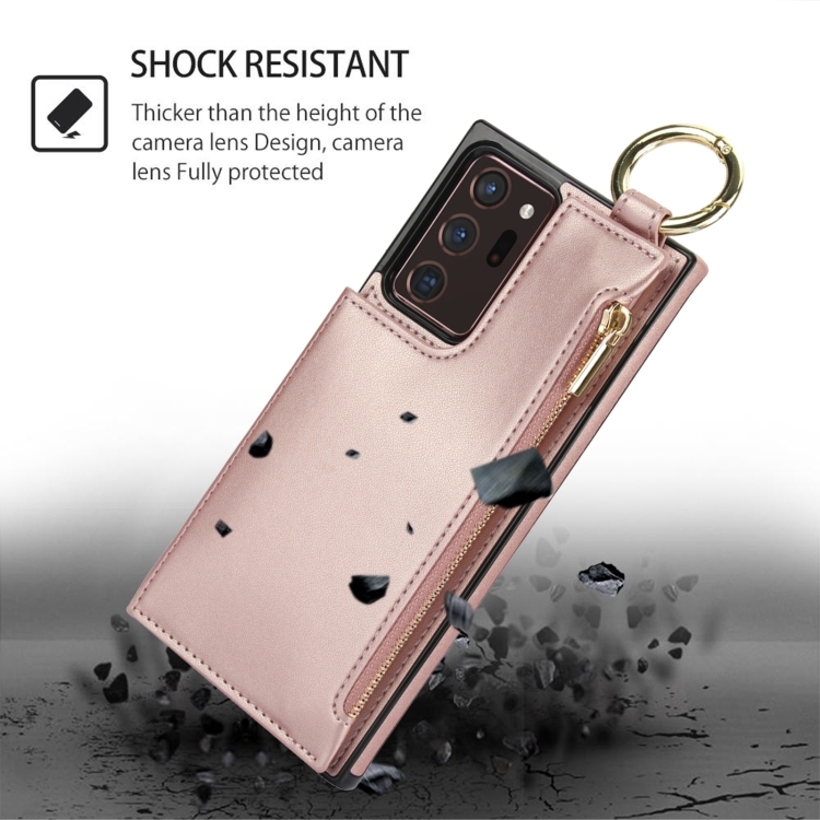 Estuche para Teléfono Samsung Galaxy Note20 Ultra Rfld con Cremallera y Anillo de Doble Hebilla Antirrobo (Oro Rosa)