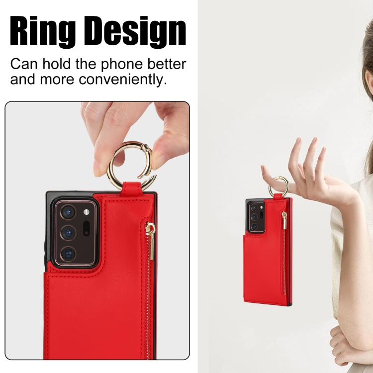 Estuche para Teléfono Samsung Galaxy Note20 Ultra Rfld con Cremallera y Anillo de Doble Hebilla Antirrobo (Rojo)