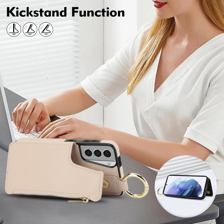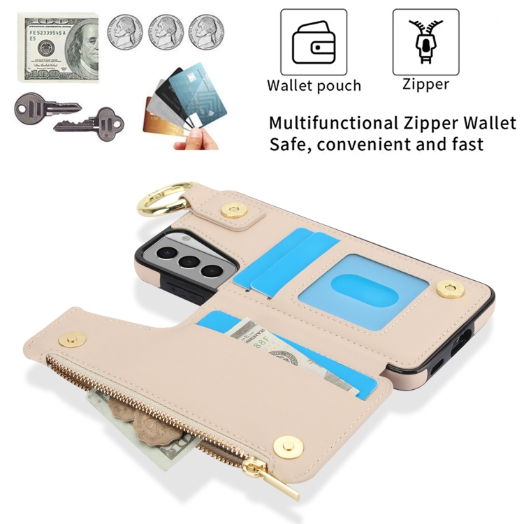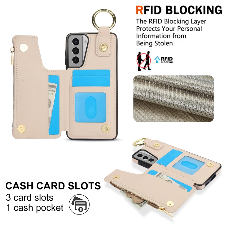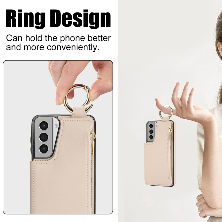 Estuche para Teléfono Samsung Galaxy S21+ 5G Rfld con Cremallera y Anillo Doble Hebilla Antirrobo (Blanco)