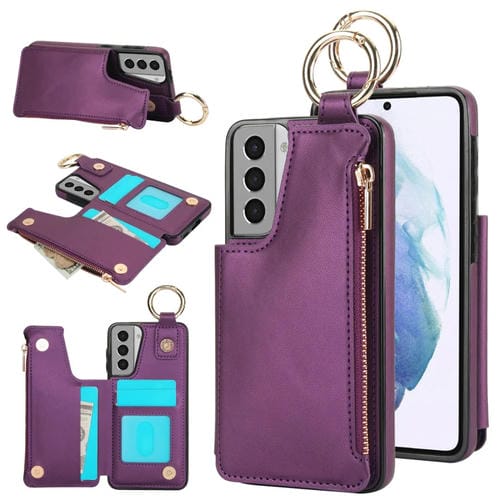 Estuche para Teléfono Samsung Galaxy S21+ 5G Rfld con Cremallera y Anillo de Doble Hebilla Antirrobo (Morado Oscuro)
