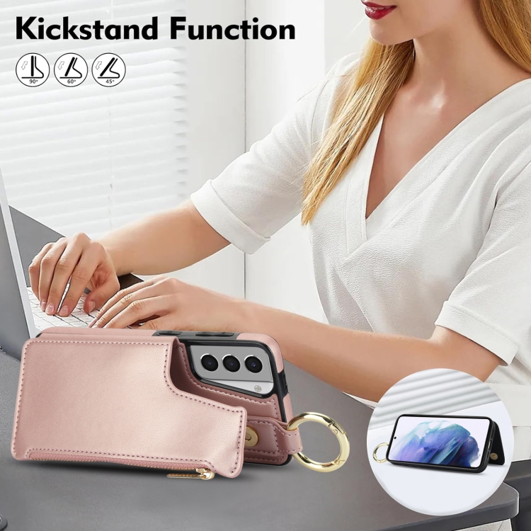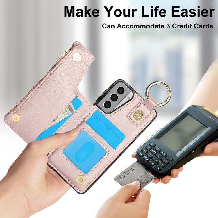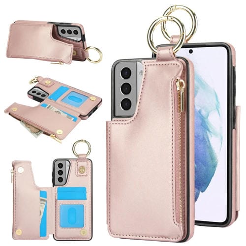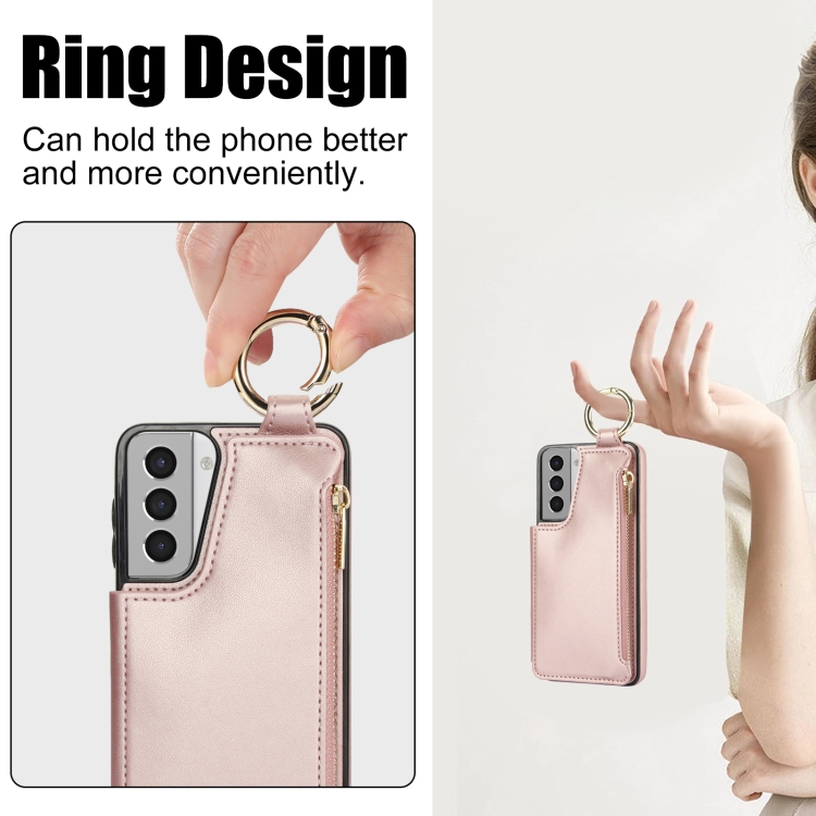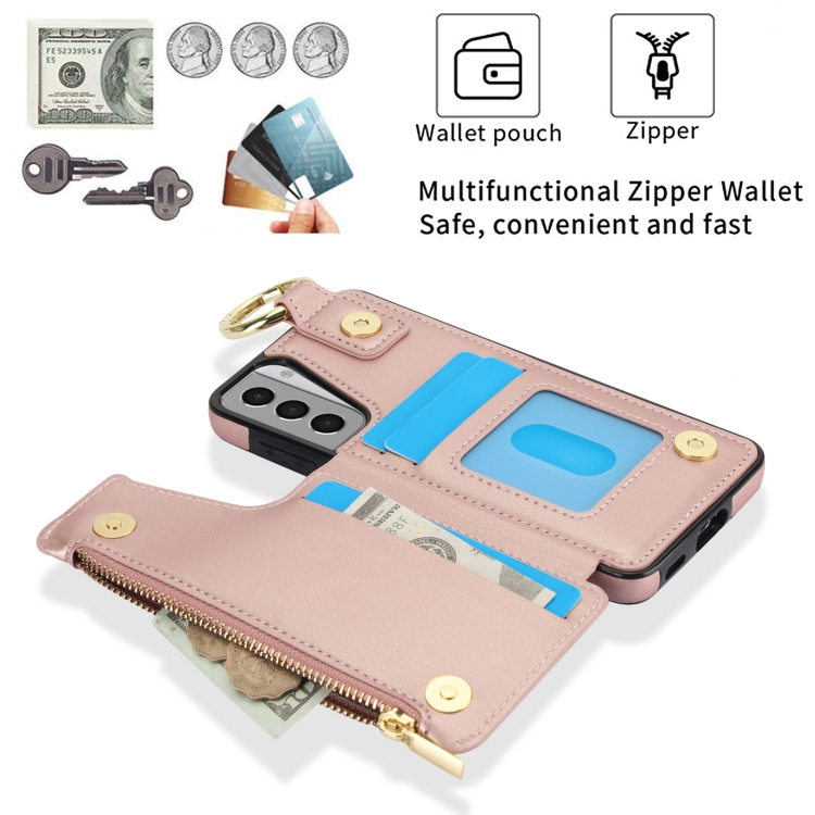 Estuche para Teléfono Samsung Galaxy S21+ 5G con Cremallera y Anillo de Doble Hebilla Antirrobo (Oro Rosa)