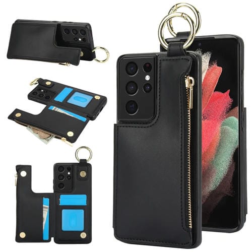 Estuche para Teléfono Samsung Galaxy S21 Ultra 5G Rfld con Cremallera y Anillo de Doble Hebilla Antirrobo (Negro)
