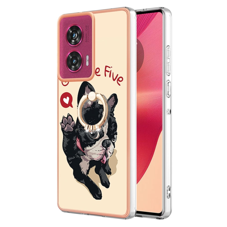 Estuche para Motorola Edge 50 Fusion con Galvanoplastia Doble Cara IMD y Soporte para Anillo (Perro de la Suerte)