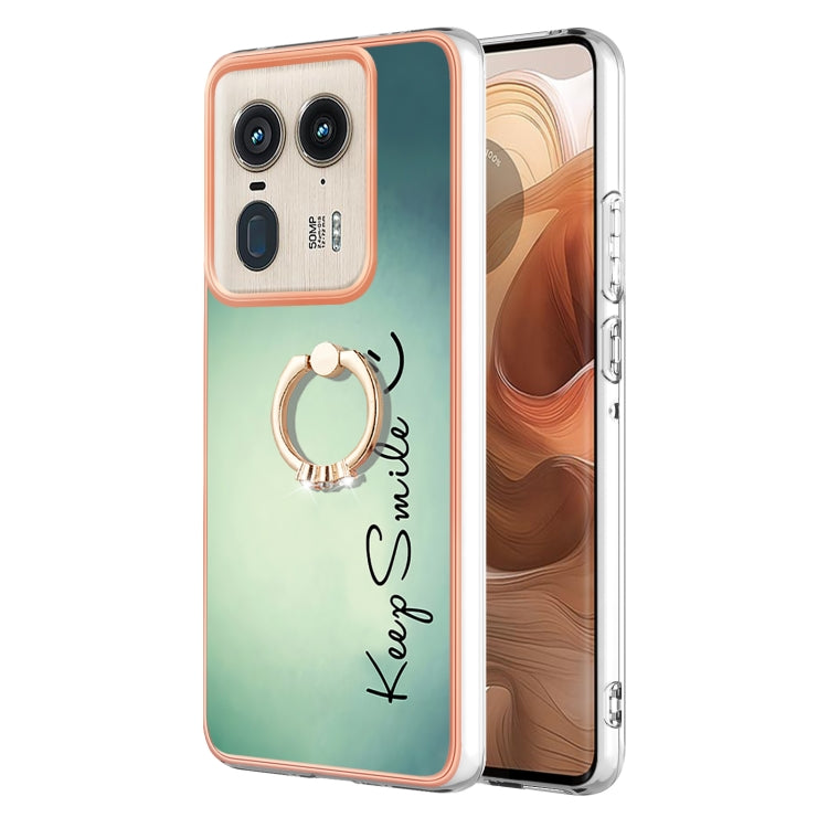 Estuche para Teléfono Motorola Edge 50 Ultra con Galvanoplastia Doble Cara IMD y Soporte para Anillo (Sonrisa)