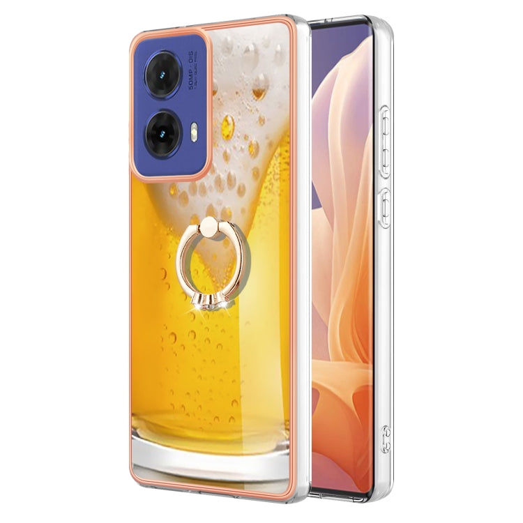 Estuche para Motorola Moto G85 con Galvanoplastia IMD Doble Cara y Soporte para Anillo (Cerveza de Barril)