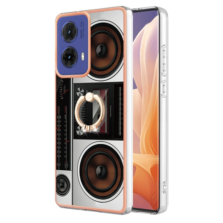 Estuche para Motorola Moto G85 con Galvanoplastia IMD Doble Cara y Soporte para Anillo (Radio Retro)