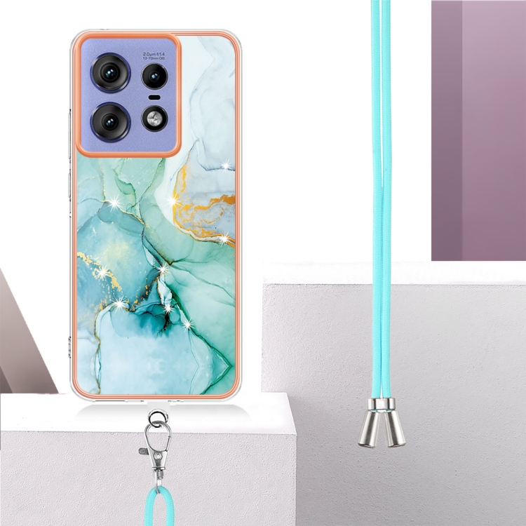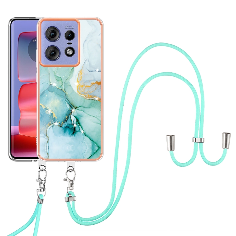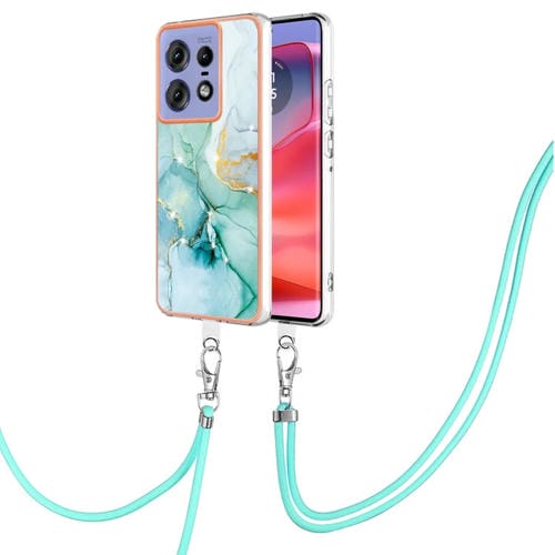 Estuche para Teléfono Motorola Edge 50 Pro con Imd Doble Cara y Galvanoplastia de Mármol con Cordón (Verde)