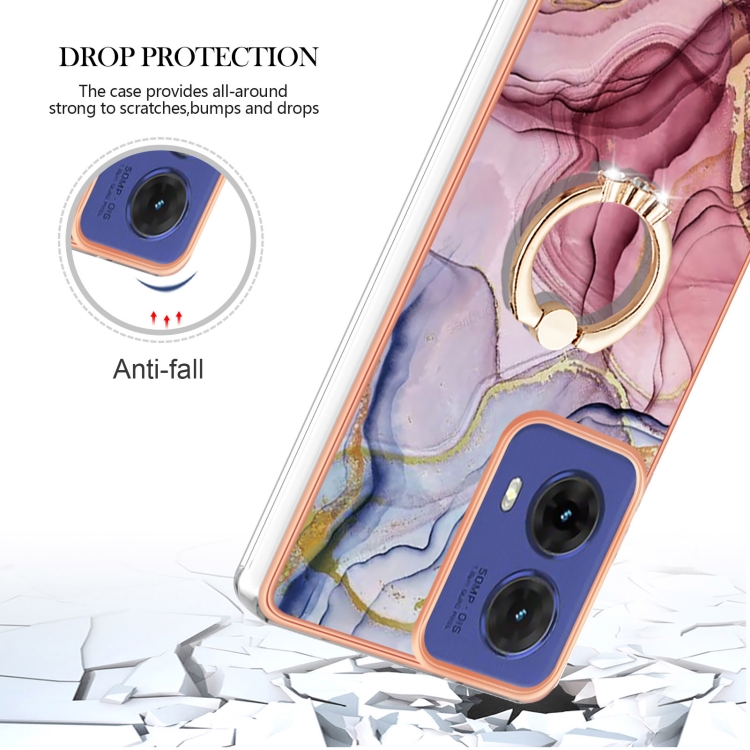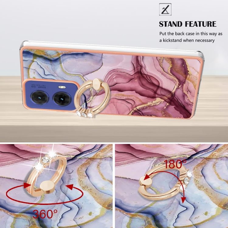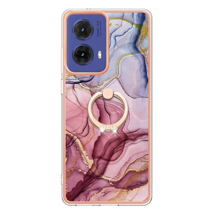 Estuche para Teléfono Motorola Moto G85 con IMD Doble Cara Galvanoplastia Mármol y Anillo (Rojo Rosa)
