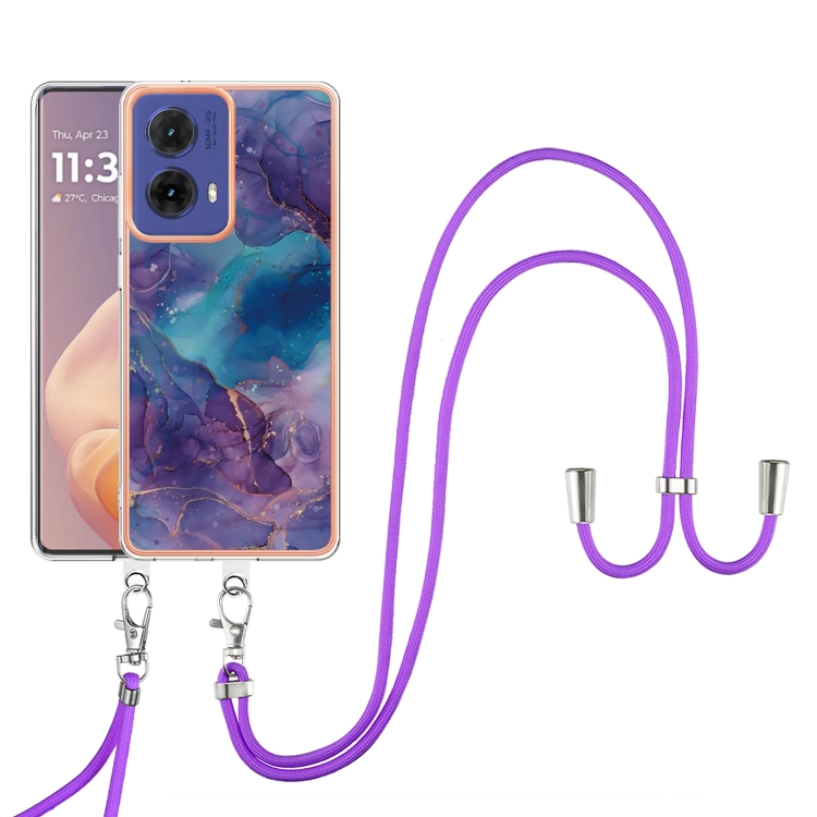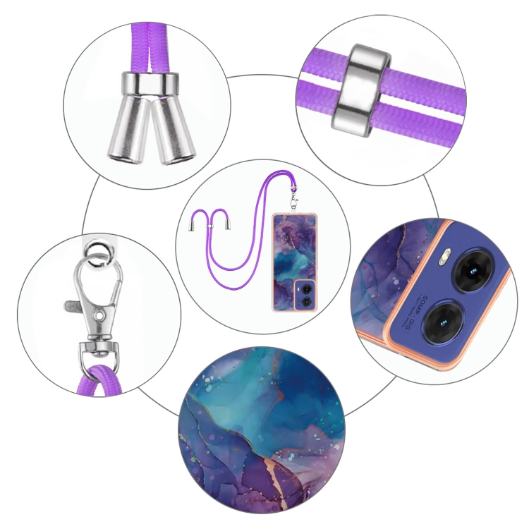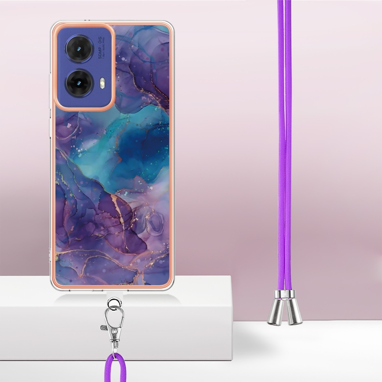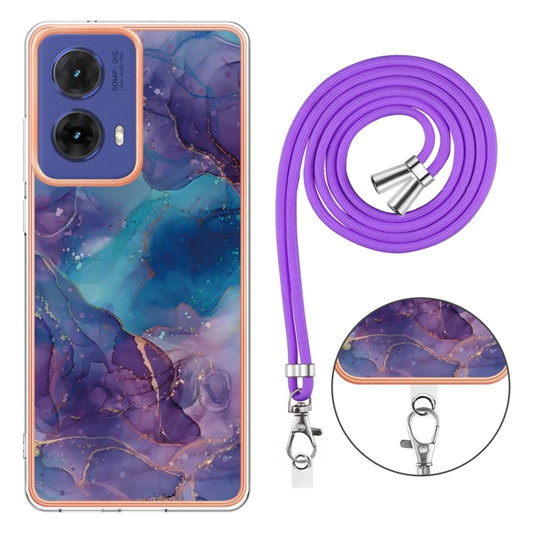 Estuche para Teléfono Motorola Moto G85 con Imd Doble Cara Galvanoplastia Mármol y Cordón (Púrpura)