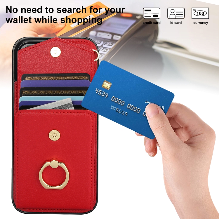 Estuche para Teléfono iPhone 16 Pro con Ranura para Tarjeta Rfid y Soporte de Anillo (Rojo)