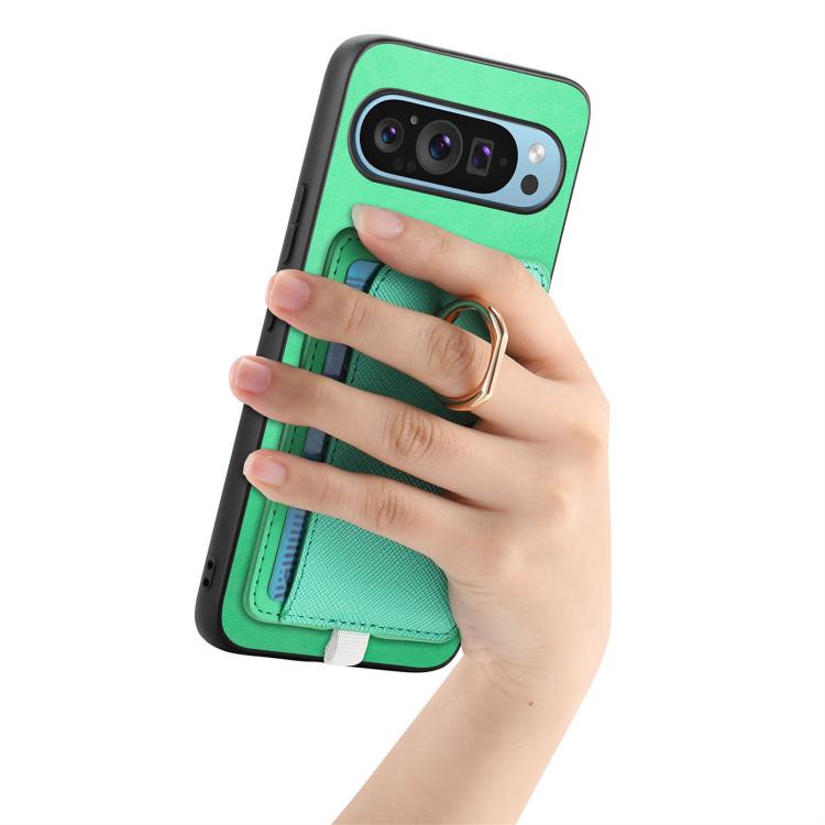 Estuche para Teléfono Google Pixel 7 con Ranuras para Tarjetas y Inserción Lateral de Cuero (Verde)