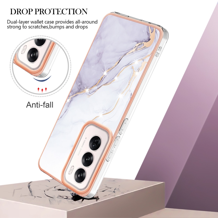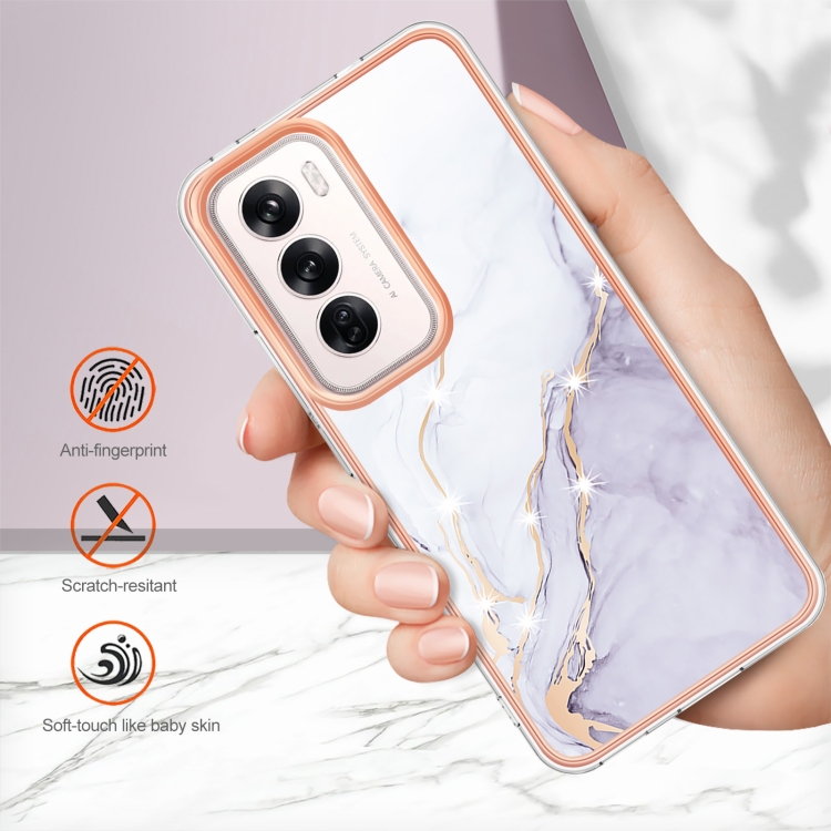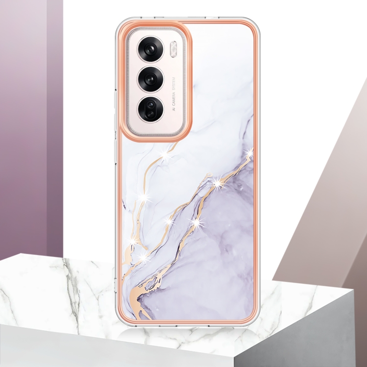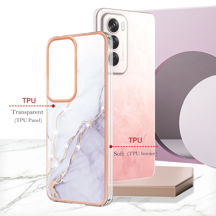 Estuche para Teléfono con Revestimiento de Mármol Electrochapado de Doble Cara Imd para Oppo Reno12 Global (Blanco 006)