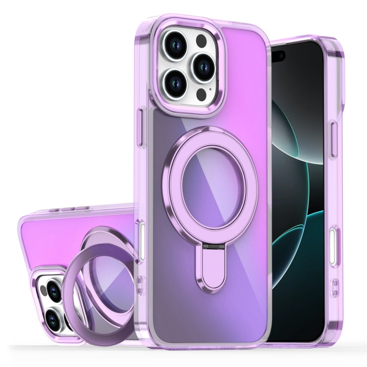 Estuche para Teléfono con Soporte Magsafe para iPhone 16 Pro Max con Revestimiento Degradado y Decoloración (Morado Transparente)