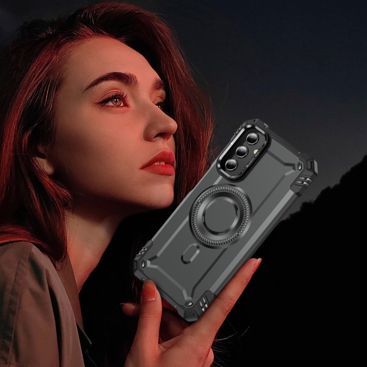 Estuche para Teléfono Samsung Galaxy A14 5G/4G con Soporte para Lente Magsafe (Gris)