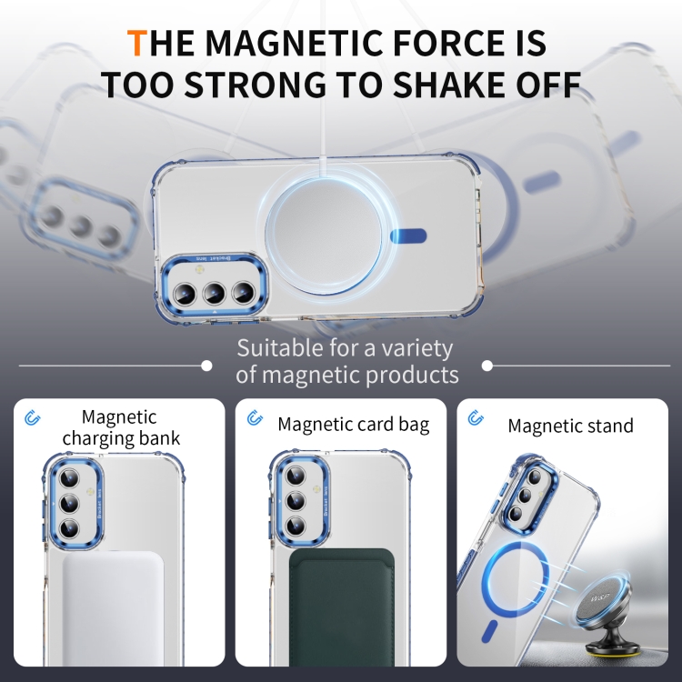 Estuche para Teléfono Samsung Galaxy A15 Soporte Lente Magsafe Serie Rainbow (Azul)