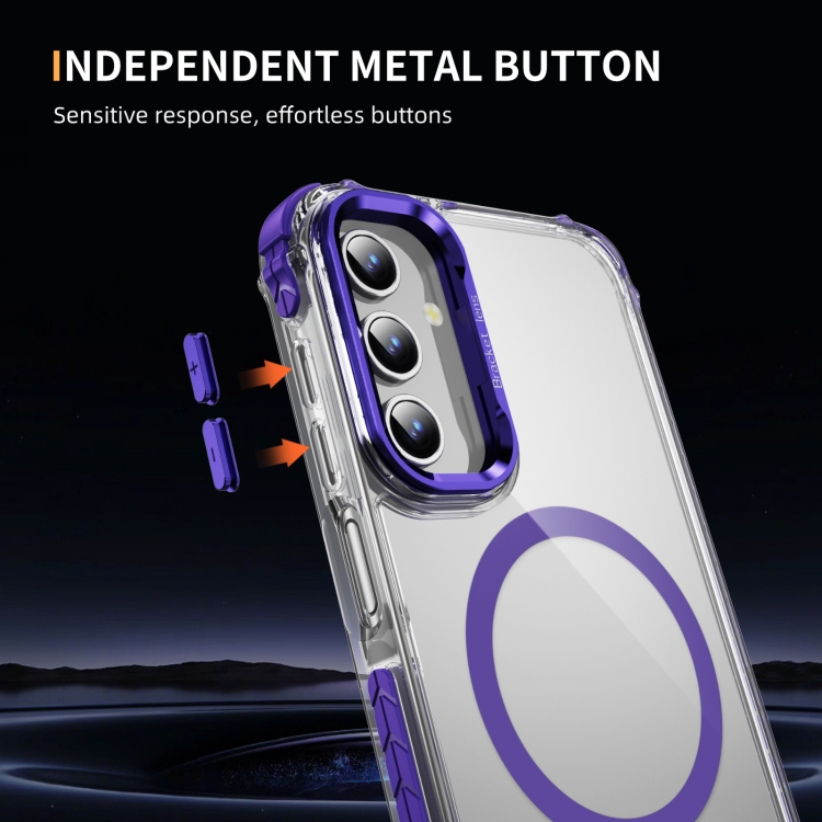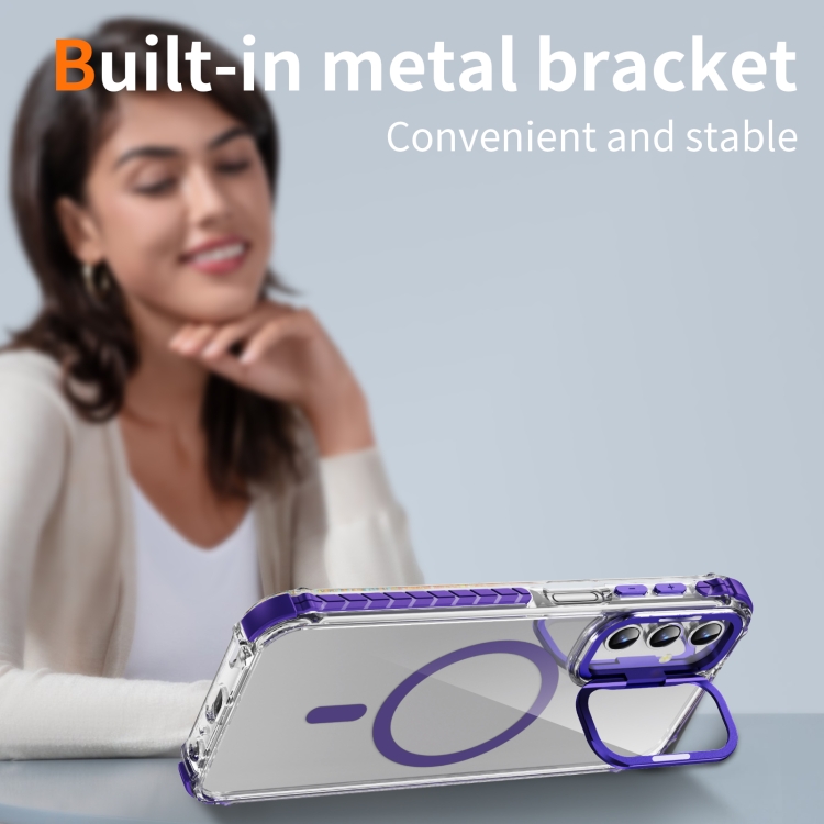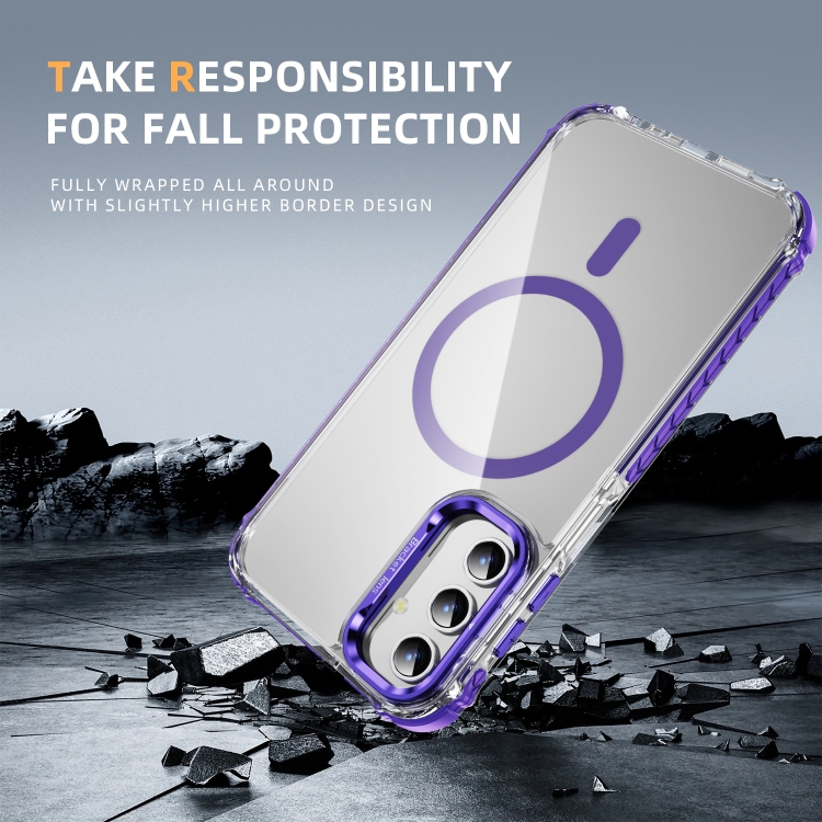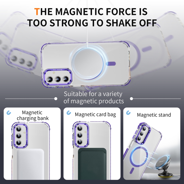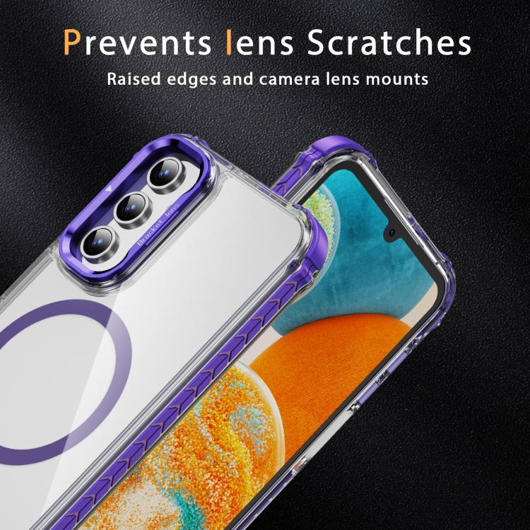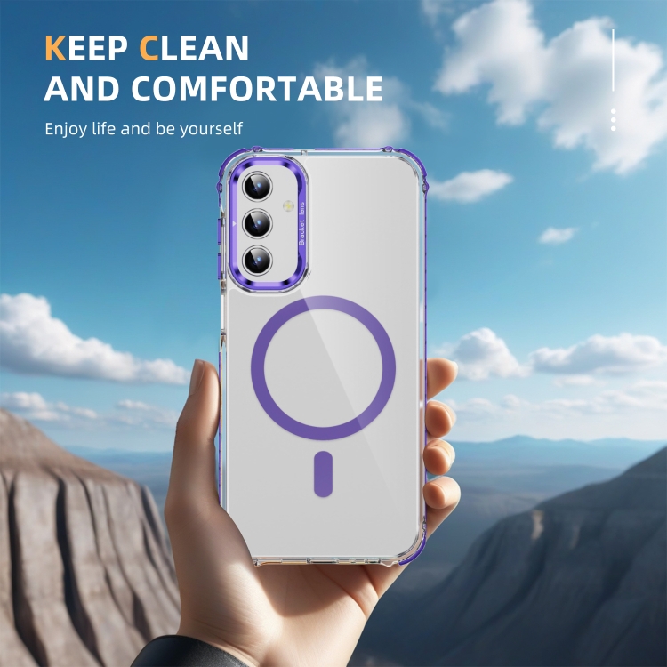 Estuche para Teléfono Samsung Galaxy A15 con Soporte para Lente Magsafe Transparente (Morado)