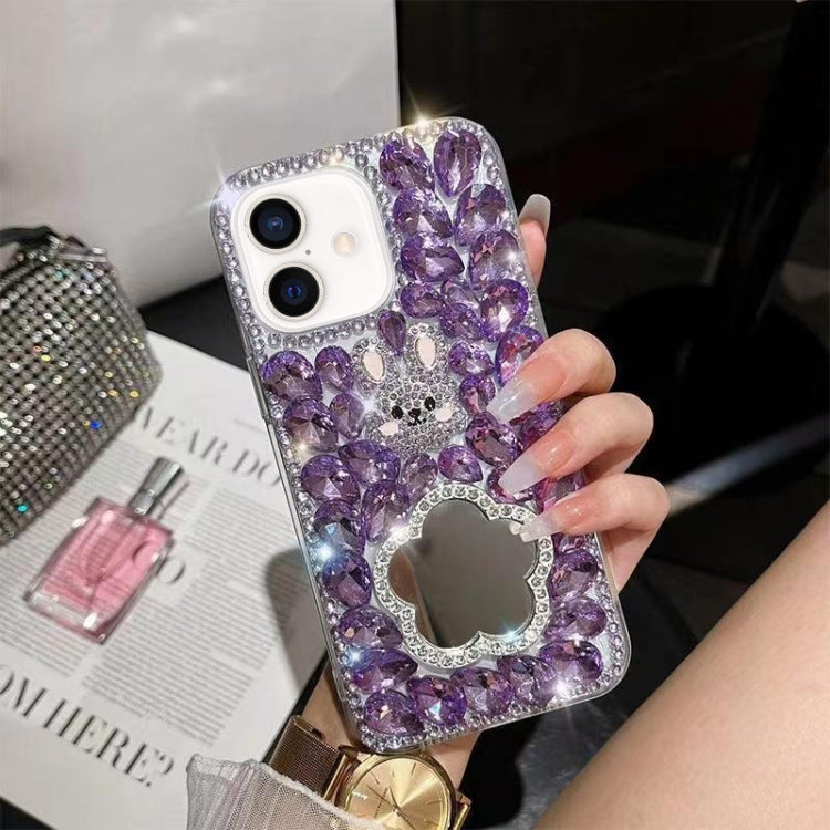 Estuche para Teléfono PC Hecho a Mano Forma Conejito Espejo Diamante iPhone 16 (Flor Morada)