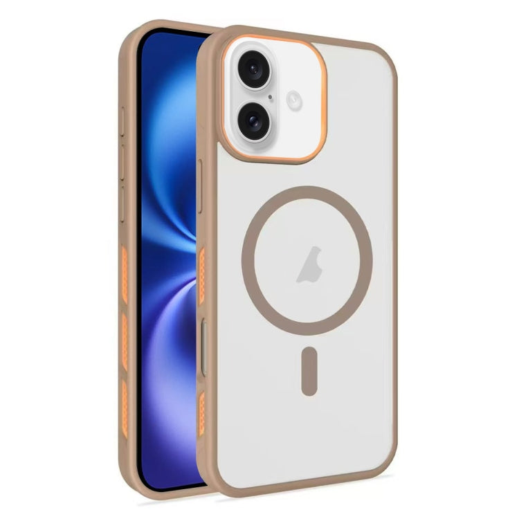Estuche para teléfono Magsafe con enfriamiento por niebla y efecto hielo con lados translúcidos esmerilados para iPhone 16 (Caqui)
