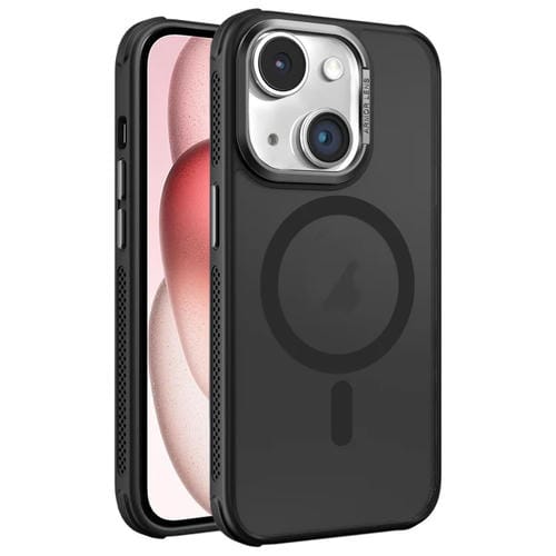 Estuche para Teléfono Magsafe iPhone 15 Marco de Lente Metal Esmerilado Sensación de Piel Enfriamiento Lateral (Negro)