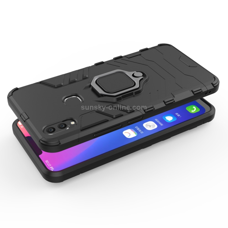 Estuche Protector PC + TPU a Prueba de Golpes para Vivo V9, con Soporte de Anillo Magnético (Rojo)