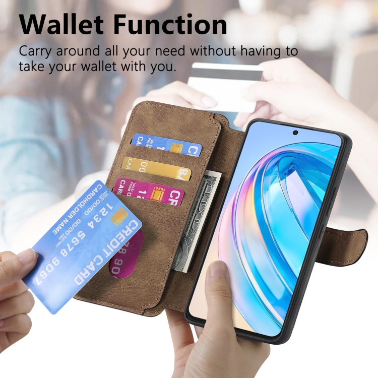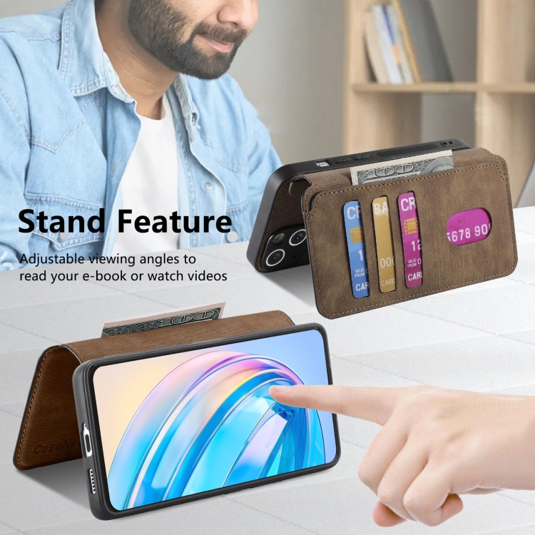 Funda de Cuero Caseneo Magsafe Rfid Antirrobo para For Honor X8A (Marrón)