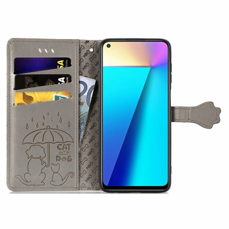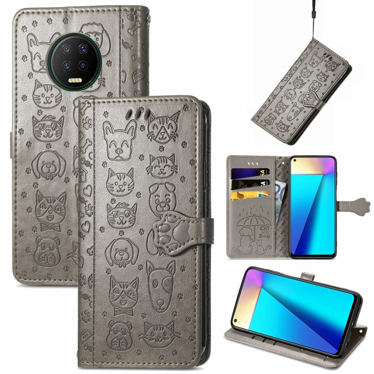 Estuche Cuero Horizontal para Infinix Note 7 con Soporte, Ranuras y Cordón de Gato y Perro (Gris)