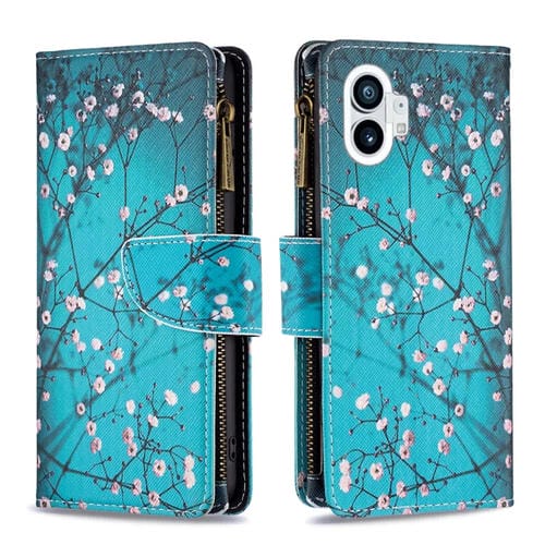 Estuche para Nothing Phone 1 de Cuero con Cremallera y Dibujo Flor del Ciruelo