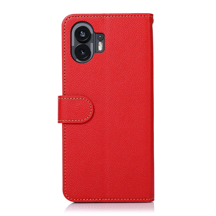 Funda para Nothing Phone 2 Khazneh de Cuero con Textura Litchi y RFID (Rojo)