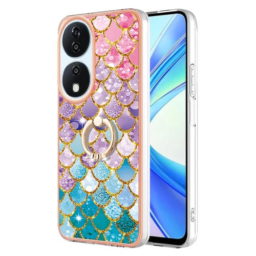 Funda TPU con Patrón Galvanoplastia y Soporte Anillo para Honor X7B 4G/5G (Escamas de Colores)