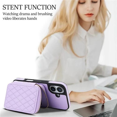 Funda AwQuer con cierre cruzado y parte trasera de cuero romboidal para iPhone 17 (morado)