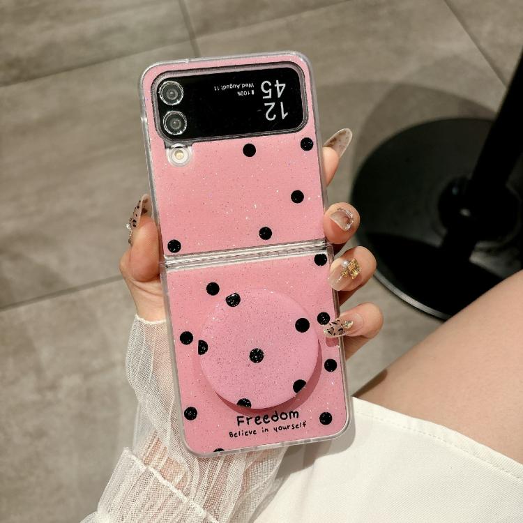 Funda con soporte para Samsung Galaxy Z Flip4 con diseño de puntos brillantes (rosa y rojo)