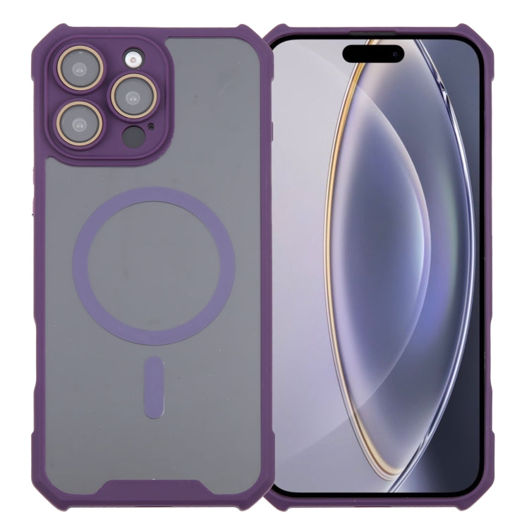 Funda de Acrílico y TPU con Bocina Magnética Magsafe para iPhone 16 Pro con Película de Lente (Morado)