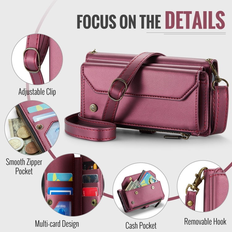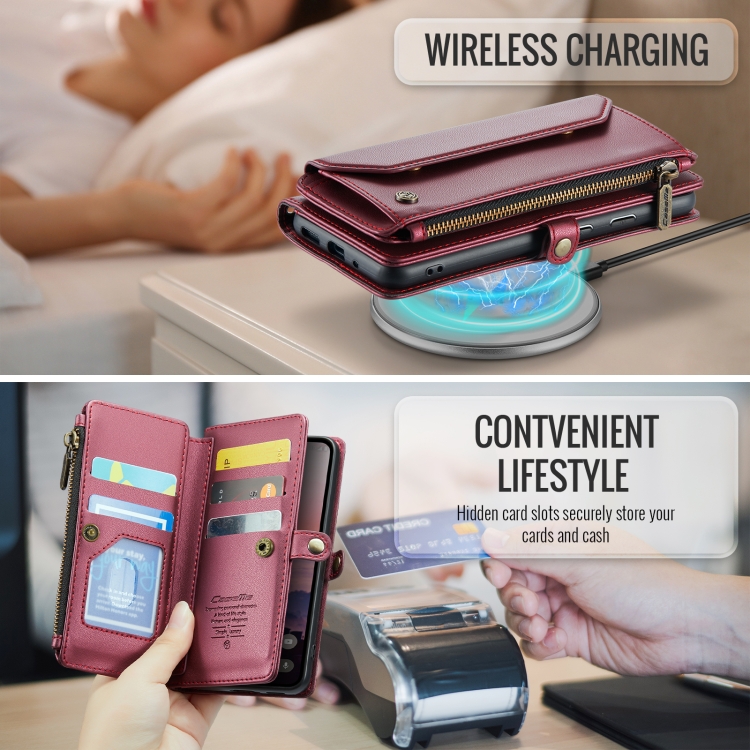 Funda de Cuero Antirrobo Caseme C36 para Google Pixel 9/9 Pro con Ranuras y Cremallera (Vino)