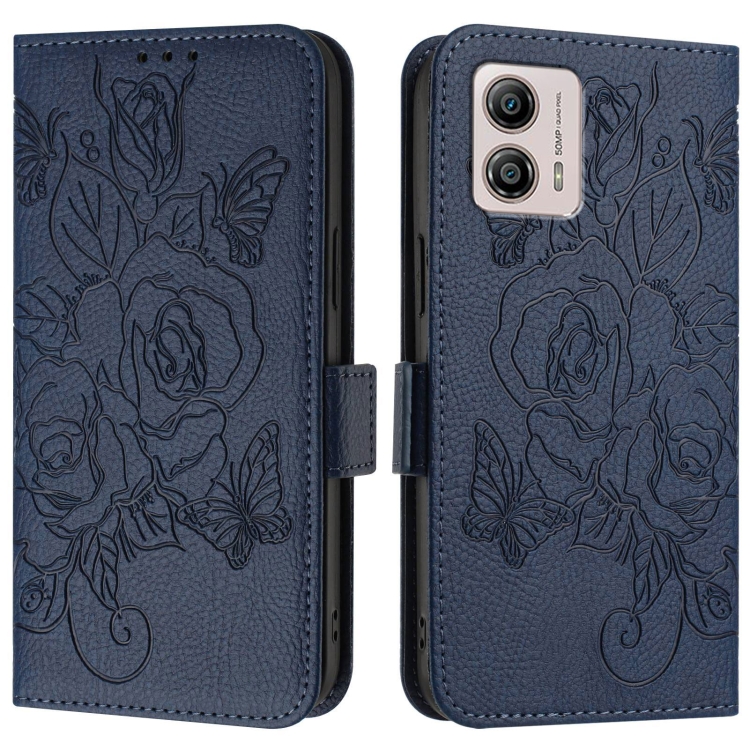 Funda de Cuero Antirrobo con RFID para Motorola Moto G53Y 5G / G53J 5G (Azul Oscuro)