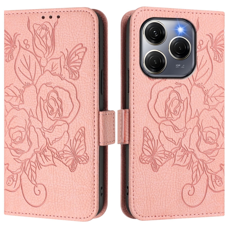 Funda de Cuero Antirrobo con RFID para Tecno Spark 20 Pro 5G con Relieve (Rosa)