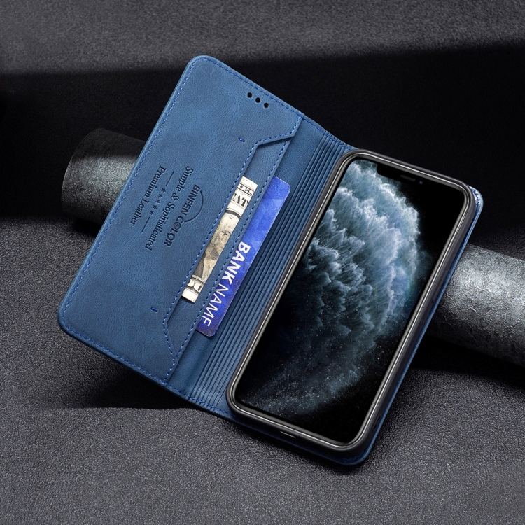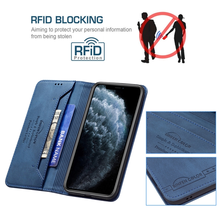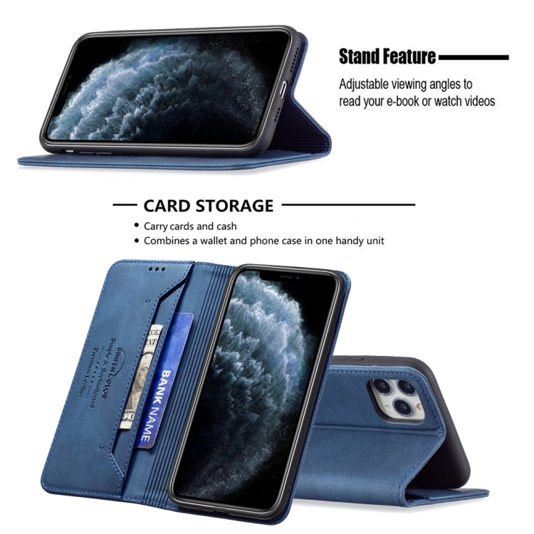 Funda de Cuero Antirrobo Bloqueo Rfid Magnético con Soporte y Ranuras para Tarjetas para iPhone 11 Pro Max (Azul)