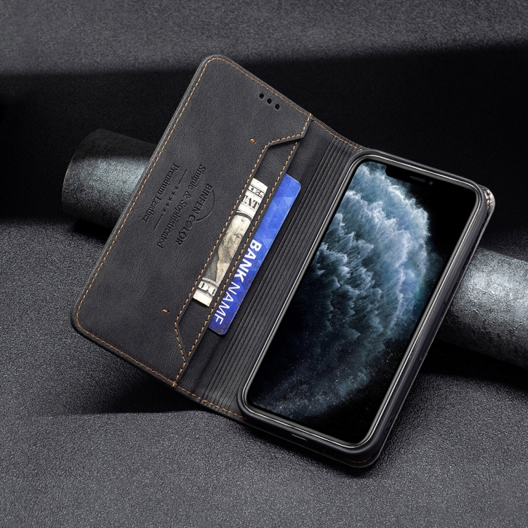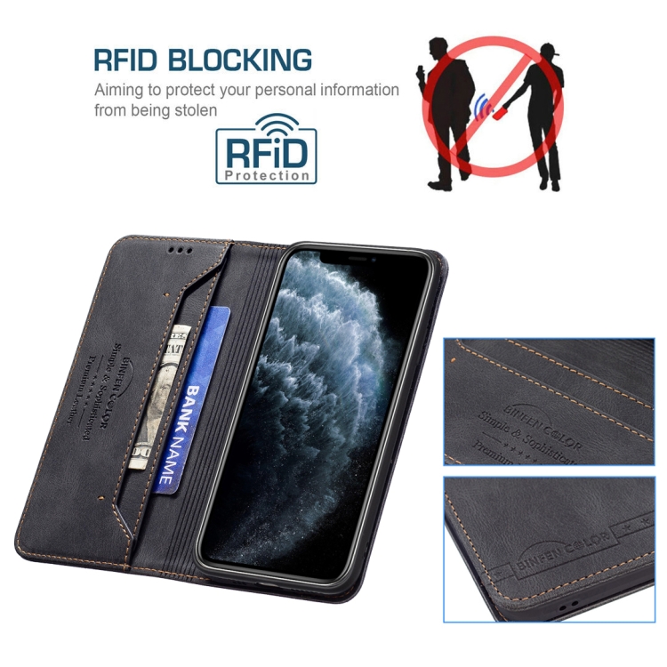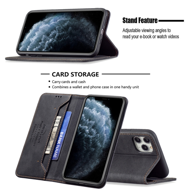 Funda de Cuero Antirrobo Bloqueo Rfid Magnético con Soporte Tragamonedas Billetera para iPhone 11 Pro Max (Negro)