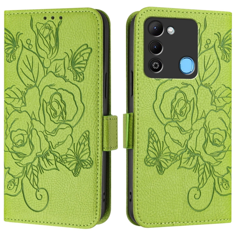 Funda de Cuero Antirrobo RFID para Tecno Spark 9 con Diseño en Relieve (Verde)