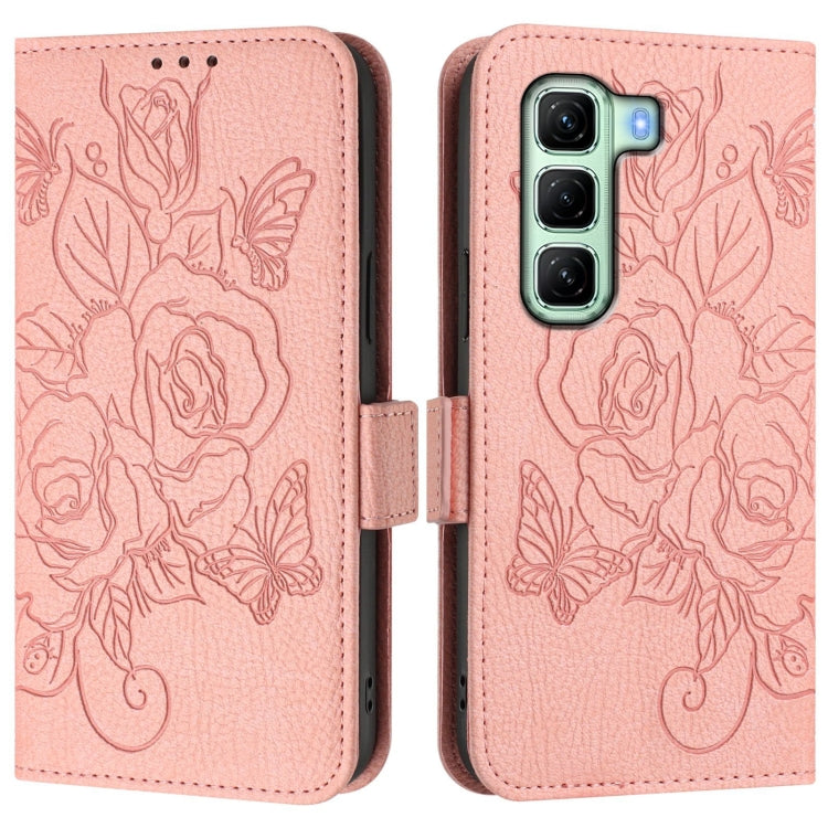 Funda de Cuero Antirrobo RFID con Relieve para Infinix Hot 50 4G (Rosa)