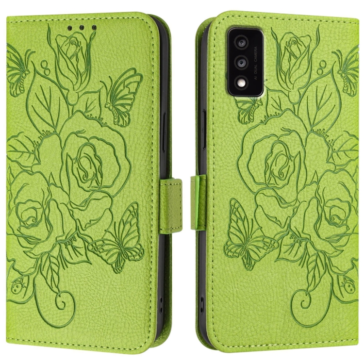 Funda de Cuero Antirrobo RFID con Relieve para TCL 30T T603Dl (Verde)