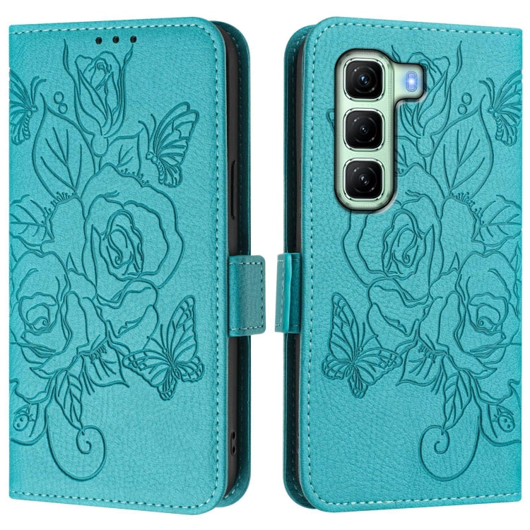 Funda de Cuero Antirrobo RFID con Relieve Rosa para Infinix Hot 50 4G (Azul Claro)