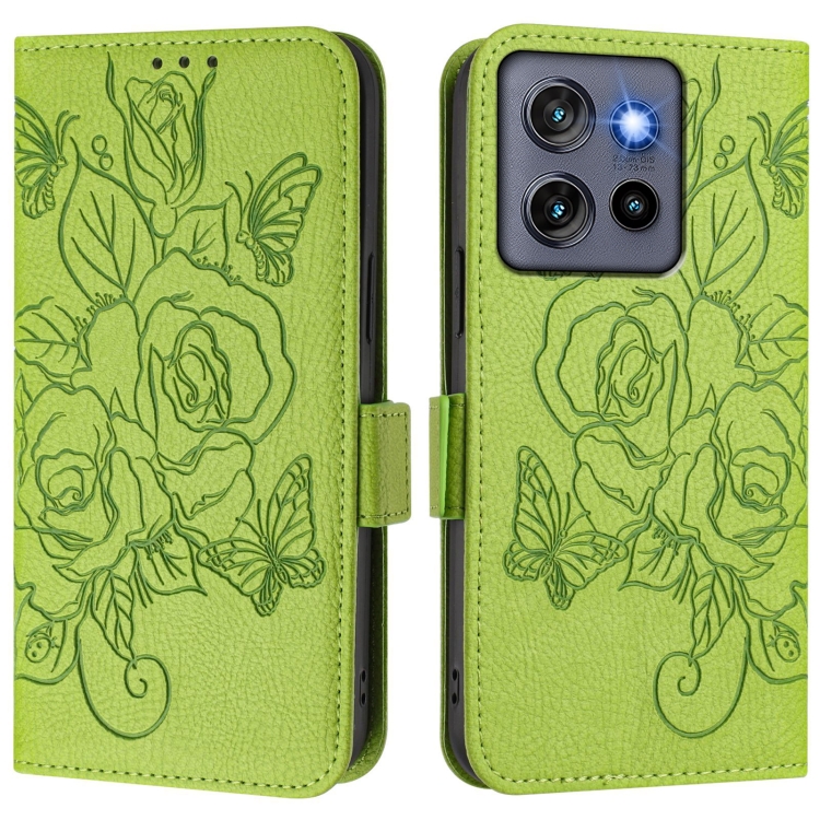 Funda de Cuero Antirrobo RFID con Relieve Rosa para Motorola Edge 50 Neo (Verde)