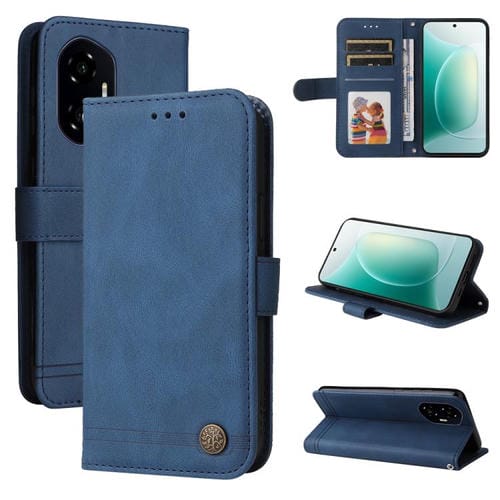 Funda de Cuero para Honor 300 con Botones de Metal y Diseño Árbol de la Vida (Azul)