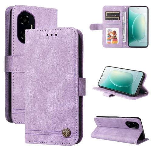 Funda de Cuero para Honor 300 con Botones de Metal y Diseño Árbol de la Vida (Morado)